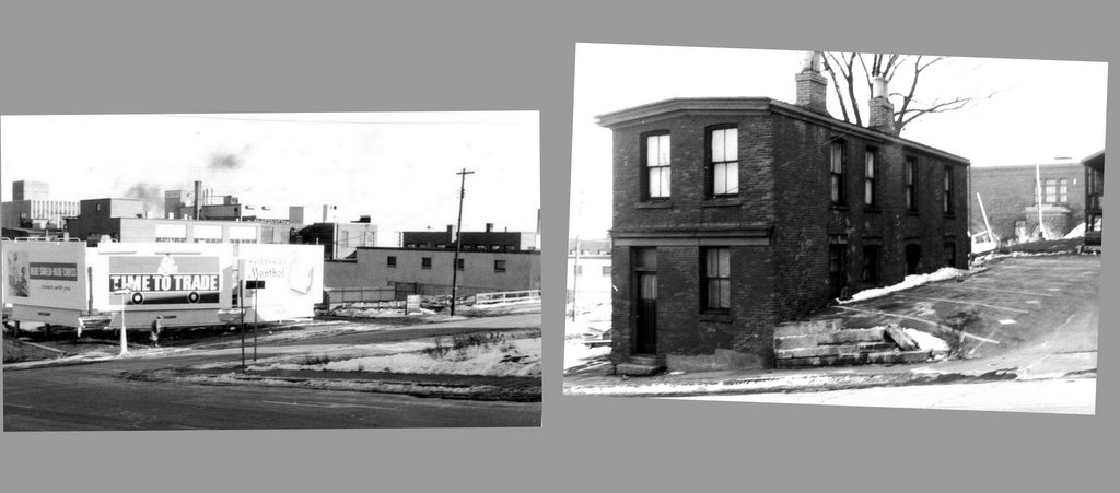 The desirable little brick building remained isolated for years and was eventually taken down. The empty land behind the billboards is part of the proposed convention centre project – so it has been vacant for about 50 years.