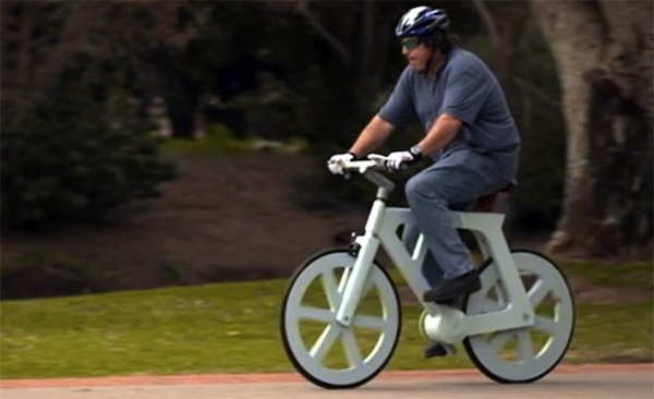 Lighter, faster, cheaper! Israeli, Izhar Gafni, has designed and will shortly begin mass producing a cardboard bicycle. The bike, including wheels, brakes and pedal bearings, is made entirely of recycled substances. Gafni expects the bike will retail for $20 and that materials will cost $9. For those worried about soggy cardboard, Gafni has tested the bike by immersing it in a water tank for months and it retained all of its hardened characteristics. (Reuters)