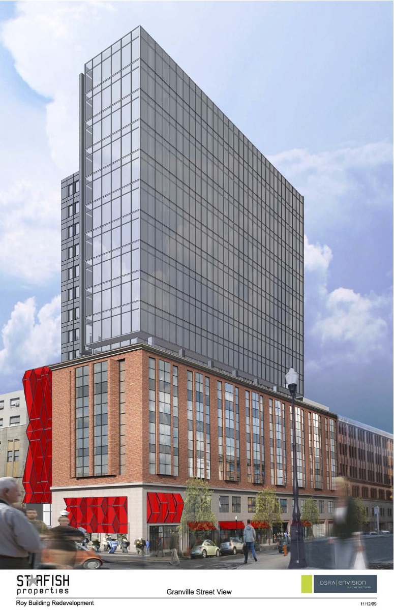While the Roy Building is located on a slightly shallower block, it’s still a huge structure—almost split into two buildings, one fronting Barrington, and another fronting Granville Street. It’s not a perfect solution, but a preservation of the Barrington-facing portion could allow a slender tower to be constructed where the Granville-facing portion currently sits. It would be vastly superior to a facadectomy, or worse, the proposal the city is currently faced with.