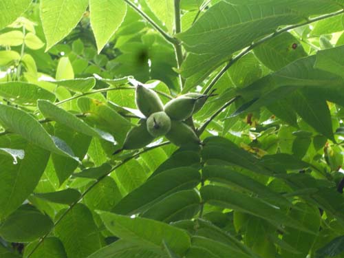 butternuts-smThis is our native walnut and its leaflets are slightly wider than the black walnut and it has a well-defined terminal leaflet which the black walnut lacks. Curiously, I have never found a self-seeded butternut and I wonder if it doesn’t need richer soil or, perhaps, it simply produces less fruit  than the black walnut. Sadly, this trees, whose nut is delicious and was widely used by First Nations and early European peoples in eastern North America, has been hit by a fatal fungus, and is  an endangered species. Nevertheless, lovely, old butternuts are still found on the McGill grounds and at a few spots along Côte St-Antoine Rd., in Westmount, once an Iroquois walking trail, and, no doubt, in numerous other parts of Montreal where there are still vestiges of old farms or forest.