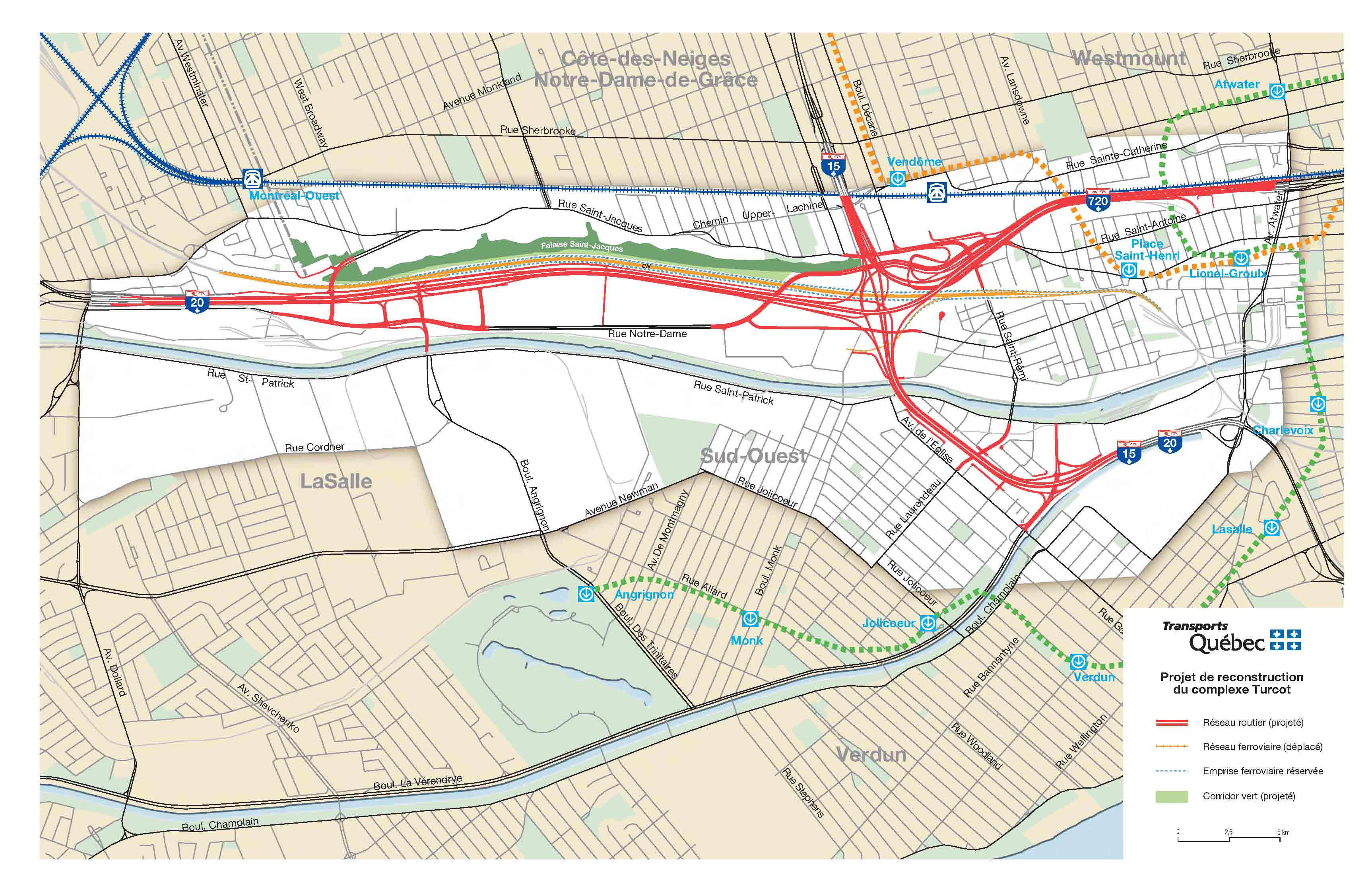 put the whole autoroute in an underground tunnel (since the noise is untolerable to living there). so the next new turcot is already in the pipeline.