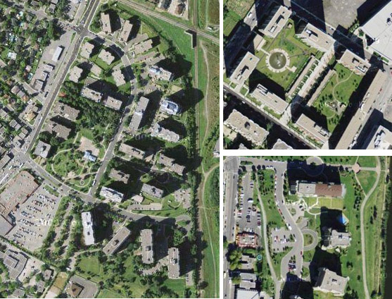 Habitations Jeanne Mance has been recognized as one of the worst urban renewal projects in the city. It’s construction led to several protests at the time. It is sensibly an area that’s disconnected from the rest of its neighborhood. It ignores the urban structure it is set in, and the green space you speak of is nowhere safe in the evening, or at night. As a matter of fact, this area is mostly avoided.