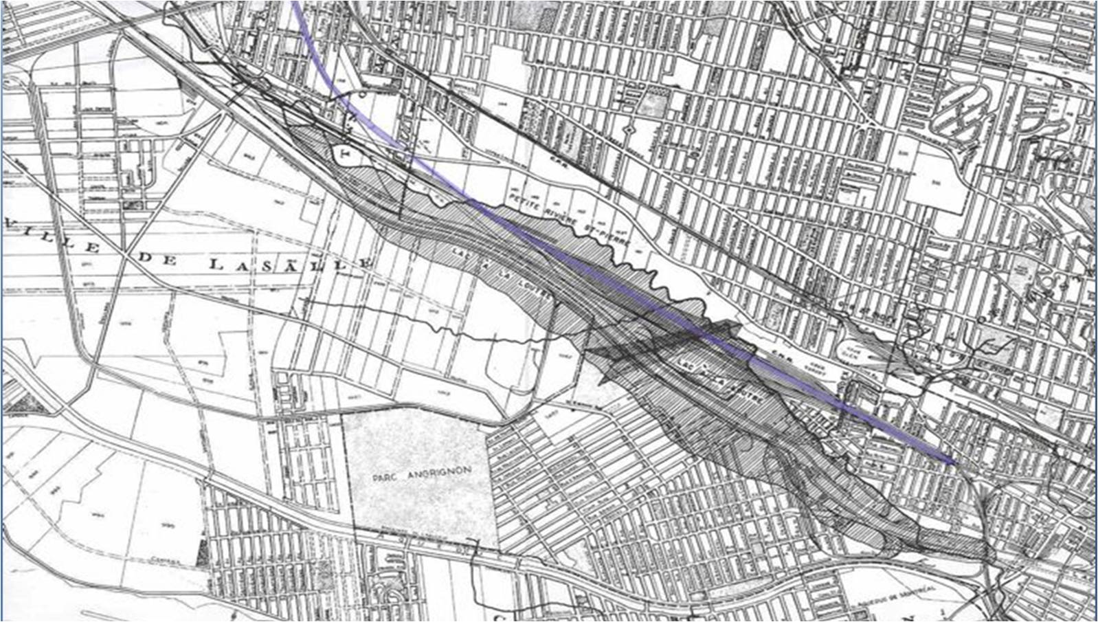The buried Otter Lake occupied a good deal of the present-day Turcot Yards (courtesy of Walking Turcot Yards)
