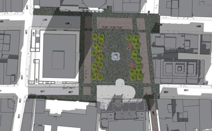 - From “Réaménagement de la place d’Armes – Idée maîtresse et proposition d’aménagement” http://www.vieux.montreal.qc.ca/placedarmes/2/pdf/pres_100412.pdf (PDF)