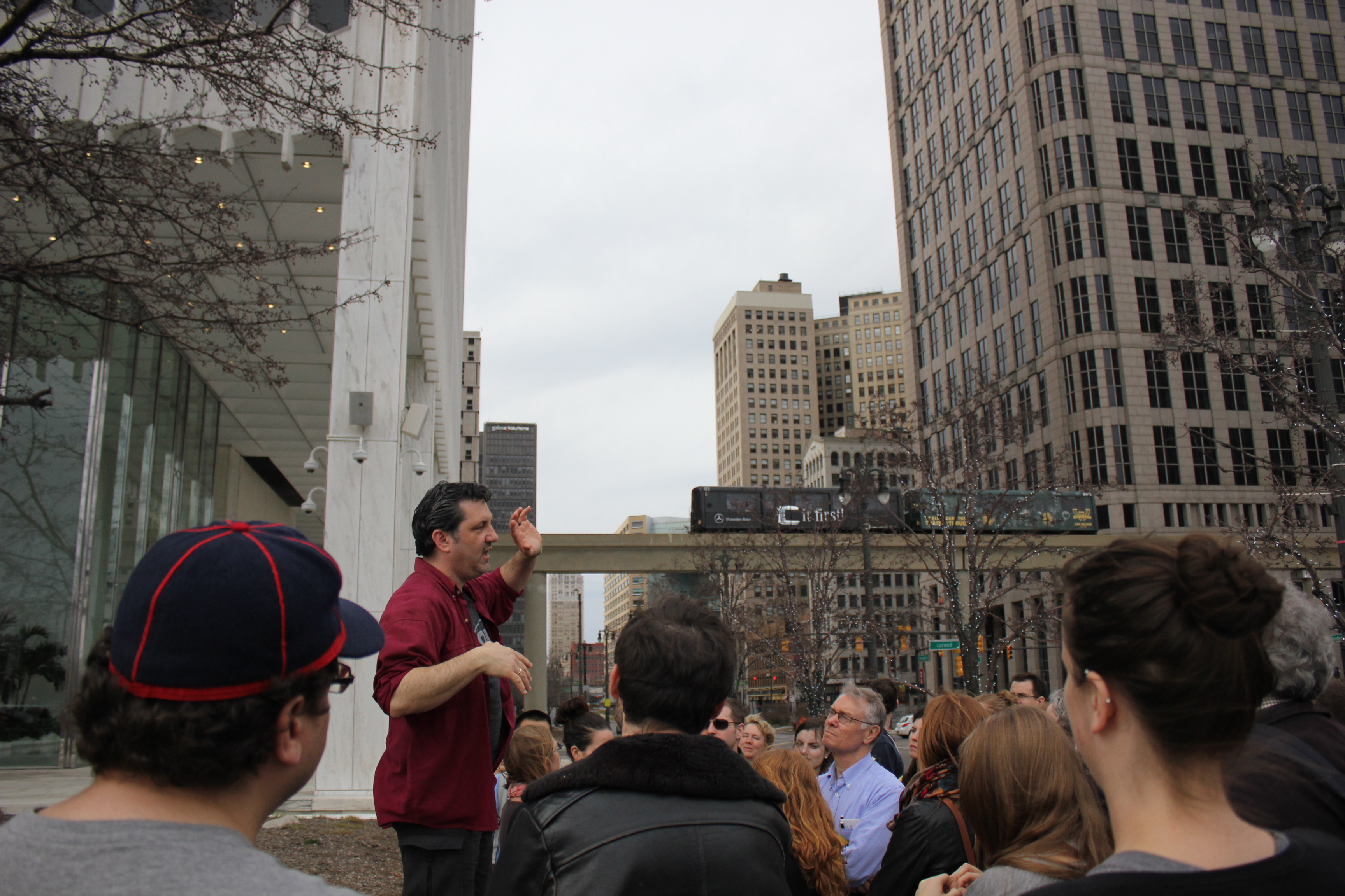 Standing at the corner of State St. and Woodward Ave. in Detroit’s downtown, the Spacing Urbanism Road Trip of over 50 Canadian urbanists barely noticed the American in the cowboy hat who had quietly joined them in the back of the huddle.