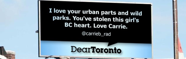 Do you love your city? Or perhaps your feelings are more complex? True love or tough love, if you can fit it into 140 characters, we want to share it with the rest of Canada this summer in the 2nd annual Dear City Canada public art project. Your voice matters — join other city-lovers in a public dialogue about the issues affecting our daily lives in the cities we inhabit.