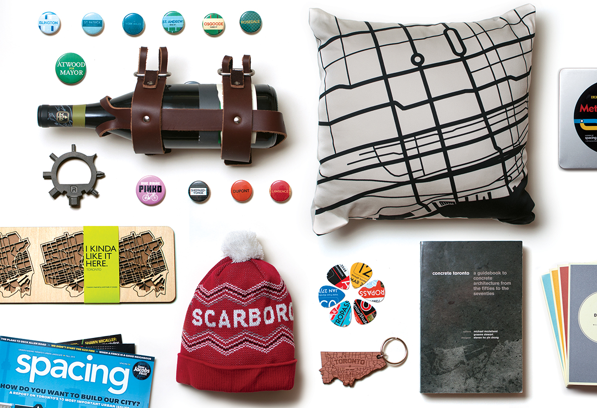 The Spacing Store is Toronto’s first true “city store”, a place where all the items are focused on Toronto and urban-centric products. You’ll be able to find all of the regular Spacing merchandise available (subway buttons, magnets, t-shirts) but also a vast assortment of prints, maps, bike accessories, coasters, candles, books, pillows, and many more items.