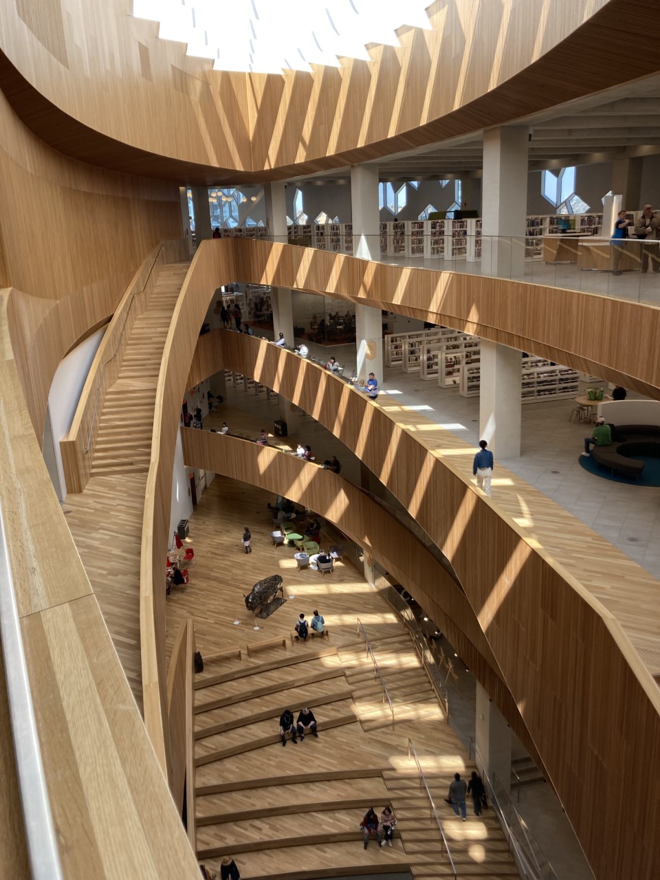 Following on the heels of the Bell has been the opening of the new main branch of the city library, designed by Snohetta with DIALOG as Architect of Record. This stunning new space includes a vast swoop of wooden soffit at the building entry, framing east or west Calgary depending on your vantage point. Through the doors and into the great atrium, this great space according to the architects has had its geometry derived from the shape of an Egyptian oil lamp, an ancient symbol of wisdom. It is indeed a great contribution to the City’s public realm, a delightful civic space for both locals and visitors alike.![]()