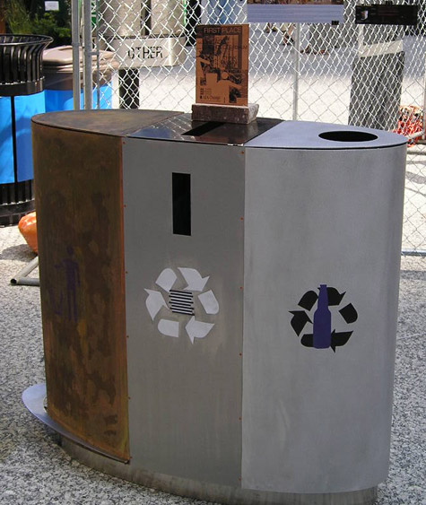 In the summer of 2005, the American Institute of Architects/Chicago Young Architects Forum called for design submissions for an ecologically intelligent urban recycling container for downtown Chicago. The reThink/reDesign/reCycle competition received proposals for a varied selection of innovative containers described in the event program with words like ‘sculptural’, ‘memorable’ and ‘symbolic’.