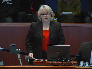 Chief Building Official V. Ann Borooah presenting the City staff report on the Billboard Tax this morning.