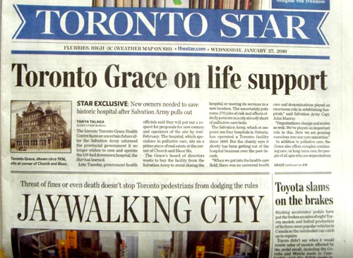 Toronto Star front page – “JAYWALKING CITY”
