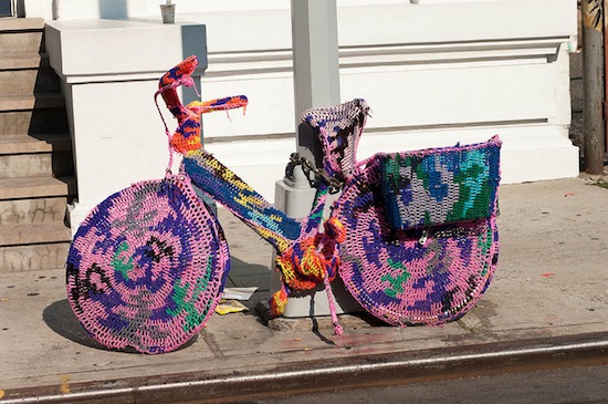 • We’ll fight the law for safer streets and sometimes the law will win. Treehugger showcases 8 DIY strategies for working around the system: guerilla gardening, knitting, bike/ped signage, eco-graffiti, parking, dumpster conversion, recycling bin art, and benching.