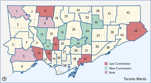 • At the half-way point in the last Council term, Maria Augimeri (ward 9, York Centre) and Ron Moeser (ward 44, Scarborough East) replaced Glenn De Baeremaeker (ward 38, Scarborough Centre) and Michael Thompson (ward 37, Scarborough Centre). De Baeremaeker’s exit was voluntary; Thompson’s was not.