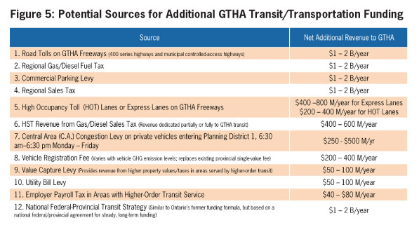 From GTA Summit backgrounder, Keeping on Track (PDF). See the roundtable report “Time to Get Serious” (PDF) for full analysis of these options.