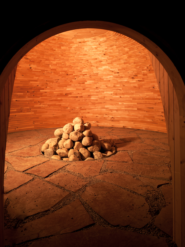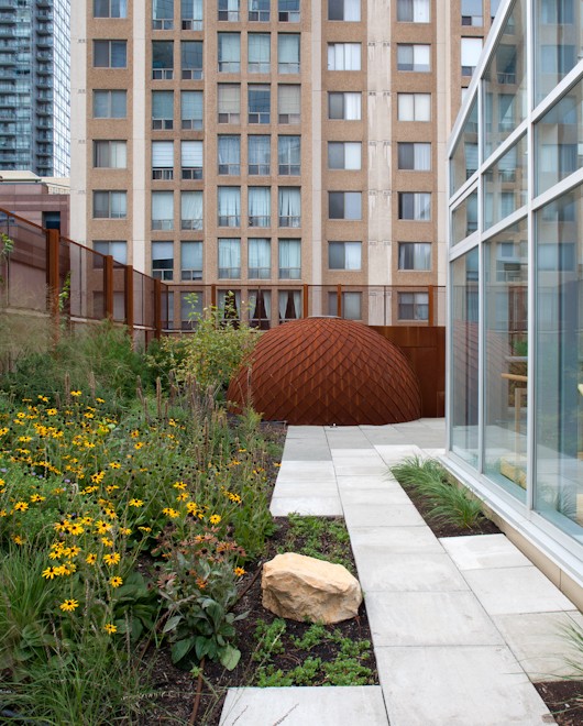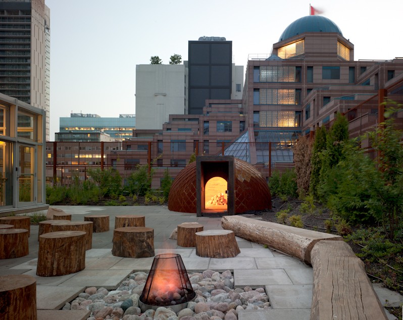 I was just as impressed by the roof garden, designed with Scott Torrance Landscape Architect. It includes a green roof, a fire pit and a sweat lodge – all beautifully designed and executed.