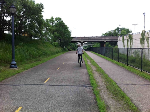 Now, the geography of Minneapolis, with its myriad lakes, is quite different from Toronto and allows for more opportunities for these types of pathways. However, there are still places in Toronto where similar off-street pathways could exist (completing the West Toronto Railpath would be a good start). As much as people have scoffed at Rob Ford’s fixation on creating bicycle trails through Toronto’s ravine system, we can learn from Minneapolis in that greenways, when planned seriously and with a mind to connectivity can really enhance and create great opportunities for safe and enjoyable urban cycling. The thing is that you have to make them go somewhere and connect to things if they are to be used by commuters as well as recreational cyclists.