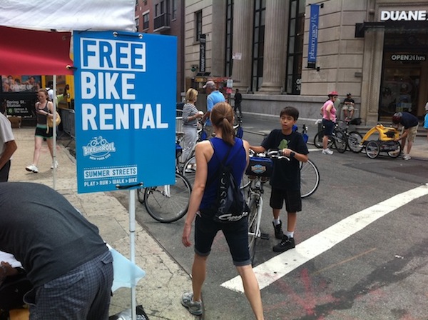 So it was with much relief that my travelling partner and I stumbled upon the fourth annual Summer Streets, a Saturday shut down of Park Avenue and connecting streets between Brooklyn Bridge and Central Park (roughly the equivalent distance of shutting down Yonge St from Front St all the way to Eglinton Ave). As a Streetsblog NYC video shows, shutting cars from the street allows for cyclists, pedestrians, joggers, rollerbladers, and parents with children from all over the city and the surrounding area to flood out into the normally hectic street and enjoy themselves.