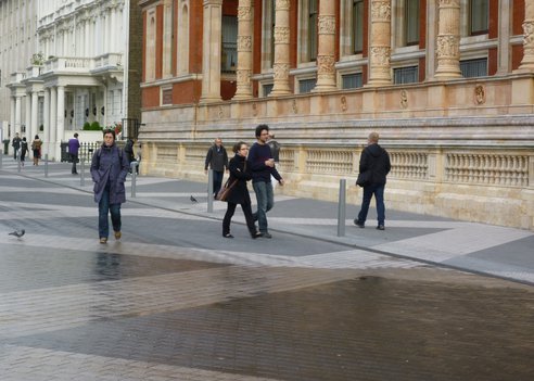 • In London, traffic planners are experimenting with reduced barriers between motor vehicles and pedestrians on Exhibition Road. The planners are attempting to draw pedestrians back to the cultural centre of the city, using visual cues and textures to communicate proper behaviours while encouraging all road users to slow down. (GOOD)