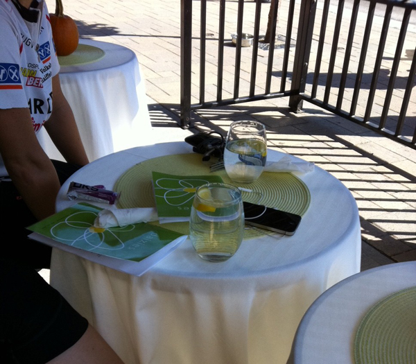 24km later…close enough. Joanne and I discuss our saddle sores in Greek, for the sake of JD.