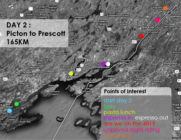 Day 2, destination: Prescott, Ontario. (Duration: 165km)