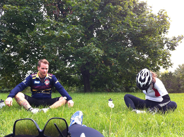 Eastview: A stretch-stop after some close calls in Kingston. Our saddle sores were becoming a major issue. It was becoming very difficult to focus on riding. Mental frustrations had me undecidedly turning my iPod on and off every 15 minutes. We were about halfway to Montreal – a fact that was both exciting, and daunting.