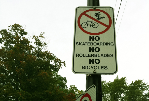 1000 Islands Parkway merger point with the 401: With darkness and signage not on our side, we missed a sharp right turn and unknowingly rode straight onto the 401, where we continued for several minutes until large sound barriers, 100km speed limit signs, and freight trucks began suggesting the situation at hand. With little option, we took the paniers off our bikes and sent them over the barriers and onto the south side, where the parallel road we should have been on was. We then followed suit (with our bodies and our bikes). To our credit, several locals later told us that it is a common mistake to merge onto the highway as a cyclist at that spot. (perhaps an area for design reconsideration)