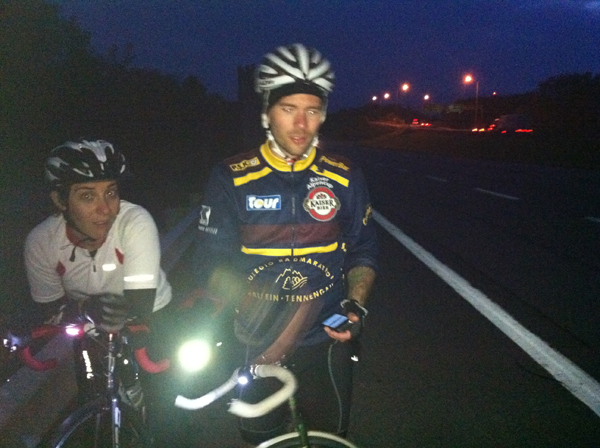 The 1000 Islands Parkway: Definitely my favourite stretch. Riding alongside water and islands makes for calm, yet engaged riding. Oblivious of the Waterfront trail on the other side of the road, we cycled alongside cars until an angry motorist honked and pointed to the trail. I’m glad he did. The comfort of a trail allowed for a greater appreciation of the sensations of the ride. I still smile when I think of the smell of the water, the hum of my tires, and the warmth of the setting sun on my black gear. Soon after, we were reacquainted with our old friend, Darkness… and destined for another very long stretch of night riding.