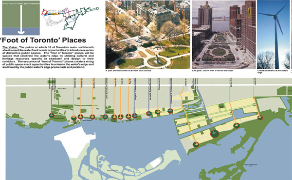 The map is from Waterfront Toronto’s “Public Space Framework” document – but it’s possible they took it from the City of Toronto’s document. In any case, WT has adopted these goals (and it’s all the more ironic if this was a City of Toronto plan originally, since the City is now ignoring it).