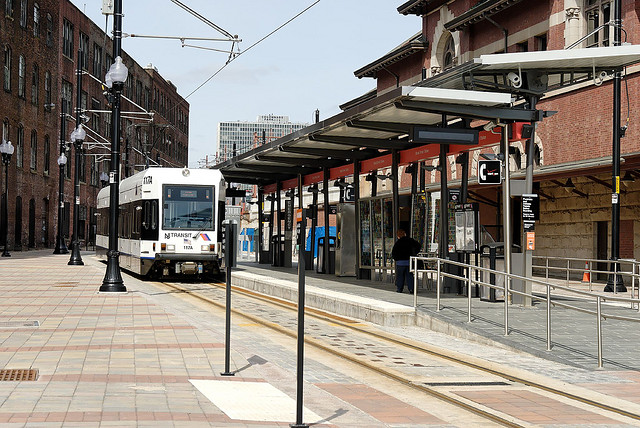 A century of declining railroads and industry also left poor north-south connections on the NJ side of the Delaware River between the small state capitol city of Trenton and Camden, the “Windsor” of Philadelphia. Applying the multiple capabilities of modern LRT, a 55 km route was installed in 2004 to act as a high-speed intercity rail connection between these cities and also serve as an urban-friendly streetcar on city streets within them. Service is every 15 minutes during peak hours and every 30 minutes at other times, again with off-vehicle fare payment.