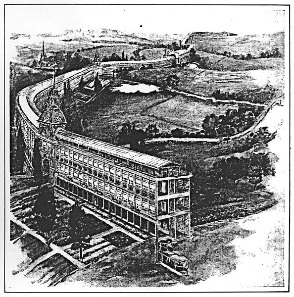In 1910, Edgar Chambless released his plans for his utopia Roadtown, a completely linear city with everything the community needed housed in one miles-long stip and completely self-contained (picture an excessively large skyscraper laid on it’s side).