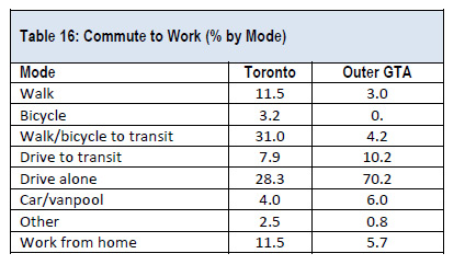 The new report from Toronto Public Health, The Walkable City: Neighbourhood Design and Preferences, Travel Choices and Health (PDF), provides a crucial statistic that has been missing from many previous reports on people’s travel modes to work: how many people walk or bike part of the way to work through getting to their transit stop.