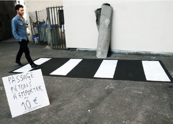 Are you miles away from a streetlight? No problem. Just roll out this handy cross walk and you’re all set. Artist Florian Rivière, part of the Démocratie Créative collective in Strasbourg, created the cross walks which sell for 10 Euros. While they don’t change traffic laws, they do add a bit of fun to urban environment – as is the case with many of the collective’s other projects. (The Atlantic Cities)