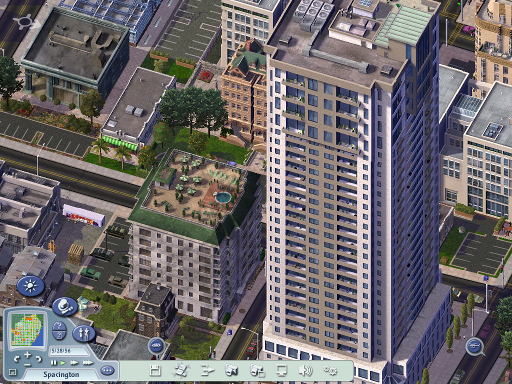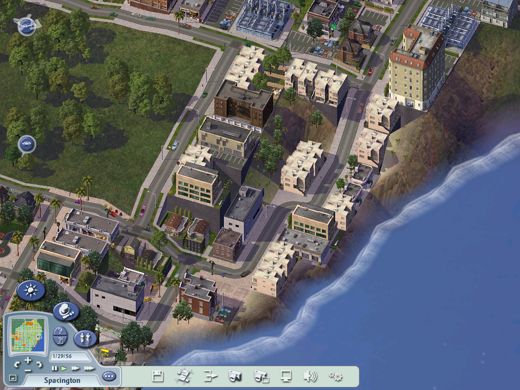 Since the name “The Beaches” has recently become available for the taking, we’ve transformed a piece of Spacington’s waterfront into our very own The Beaches. Discussed and shown last week, we added a waterfront. New shoreline amenities are now part of the city. They allow Sims to interact with our waterfront, water gaze, and dive into some water activities. So in The Beaches it was all about providing a waterfront community to live in.