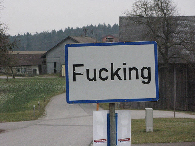 The community got its first international attention during World War II as British and American soldiers had their pictures taken beside the four traffic signs, which simply read “Fucking.” British tourists have become very popular in last half century and are notorius for taking lewd photographs and even stealing the signs. The community recently replaced the signs with welded steel and concrete ones to deter theft. While the taxpayers weren’t happy with constantly replacing the old (costing €300 each), it did make for some unintentionally funny quotes from local officials: