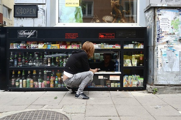 The fall of the Berlin Wall yielded some pretty interesting urban economies in Bulgaria. After the fall of Communism, when private ownership of production was legalized, basement shops, called ‘klek’ shops (in English, knee shops), began to spring up in Sofia. The basement locations were affordable for entrepreneurs just starting their new businesses. The shops tend to sell cigarettes, snacks and alcoholic and soft drinks, some also provide services, such as shoe repair. The shops are so low that customers must squat to interact with the vendor. (PopUp City)