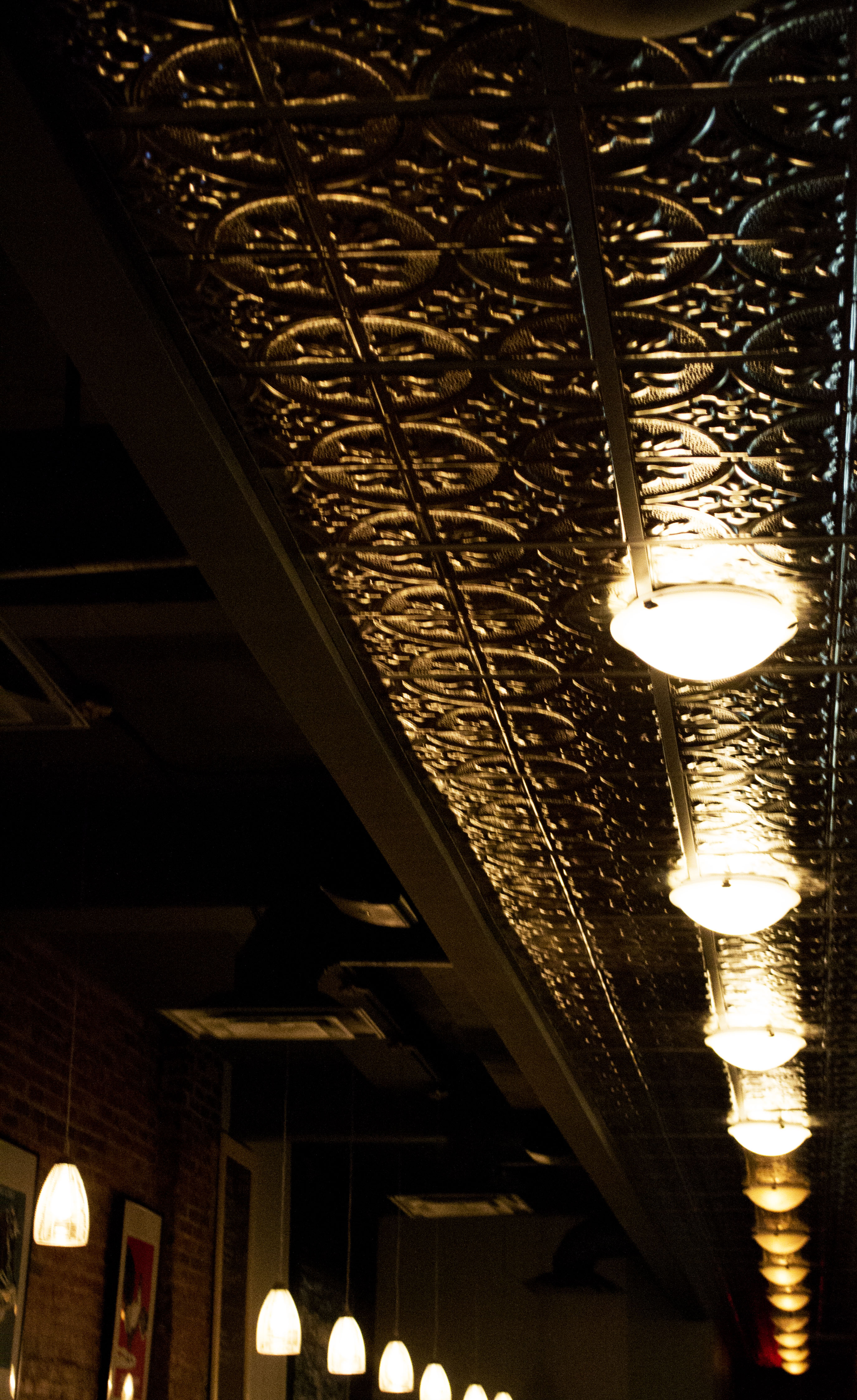 The reflective tin ceilings are custom made from Texas. “I arranged to get someone I knew a roll of tin and had the tiles custom pressed for me, otherwise they would have been too expensive to buy from any place I could find,” he said.