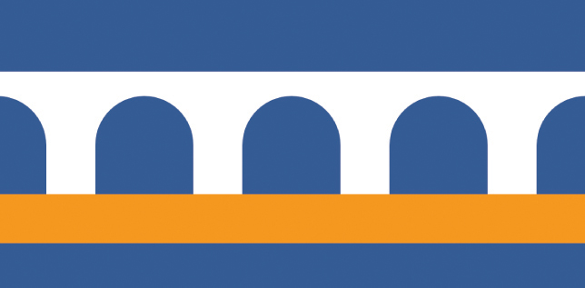 A stylized bridge, which is a canting (basically a heraldic pun) of the road’s name. The blue and white colours represent the former edge of ancient Lake Iroquois, while orange is the main colour of the iconic Dupont subway station.