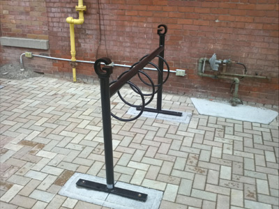The bike posts are also specific to the area, monogrammed with a “G” for the Glebe.