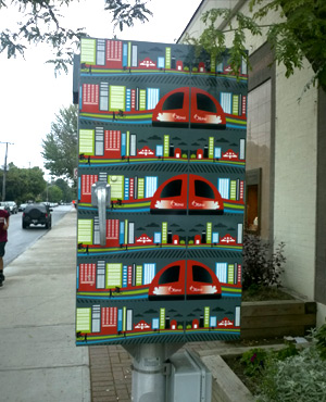 A nice touch was the decorative wrap created for the dull grey traffic signal boxes (I’m not sure if this is just for this area or for other parts of town too).
