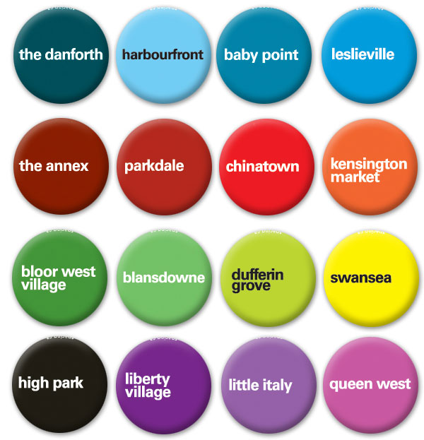 DISCOUNTED: Neighbourhood buttons, Toronto Town buttons, and Highway buttons