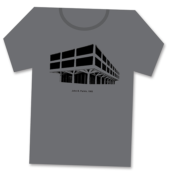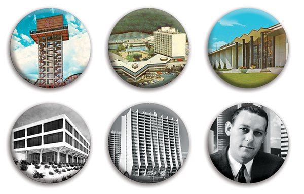 Spacing Modernism stuff: buttons of demolished buildings & t-shirt of old Bata Shoes HQ