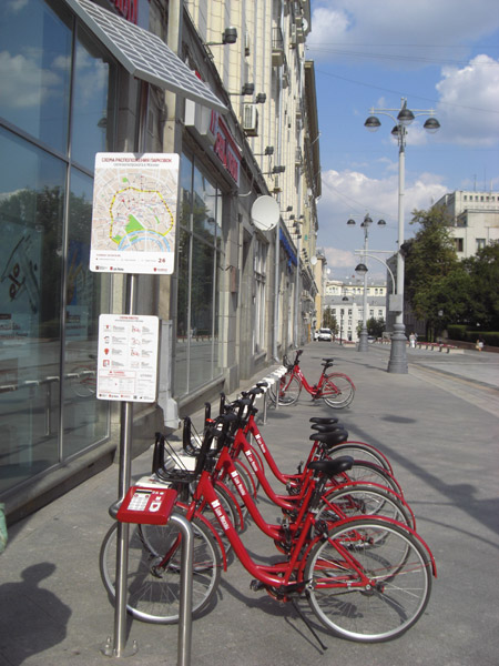 As well as walking infrastructure, Moscow is expanding it cycling infrastructure. They’ve introduced a bike-share system — one that seems to be directed mostly at residents, since its instructions are only in Russian.