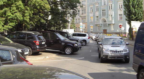 Moscow has a long way to go before it can be considered pedestrian-friendly, but it is trying. To stop the habit of Russian drivers parking on the sidewalk, the city has been painting parking spaces onto the streets. While there were no cars parked on the sidewalk on main streets, there’s still some ways to go to get Russian drivers out of the habit on side streets. Below, the cars have completely ignored the parking spots and parked right across the sidewalk.