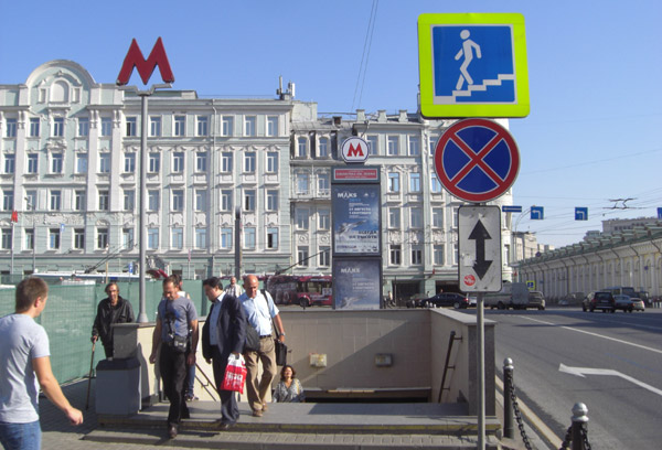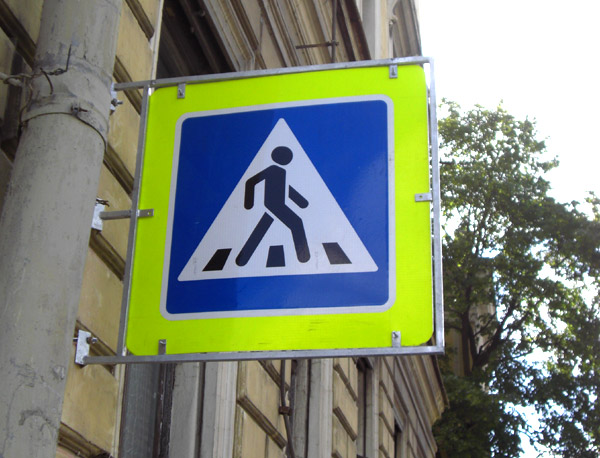 Finally, a couple of examples of standard pedestrian signage in Russia. The “crosswalk” sign, accompanied by zebra stripes on the street, indicates that cars should stop when you step out onto the street.