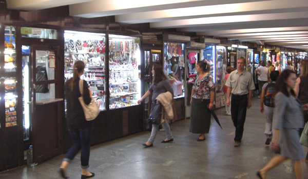 Many of these passages are filled with kiosks, so that at least they double as a kind of miniature shopping mall.