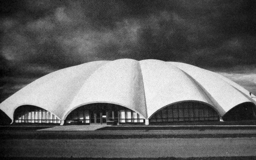 The domed, wood-framed structure was the work of architect Douglas M. Hall. He called it “a flower at the end of the long stem of buildings,” referring the original Don Mills shopping centre. Its eight wooden support arches merged into a crown 16 metres above the ground, giving the roof a deeply ridged texture. “Anything that approaches nature is fundamentally good mathematics,” Hall told The Don Mills Mirror.