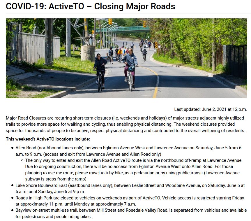 The most painful irony is that it continued to use an image of Bayview in its full, lost, ActiveTO open street glory on the ActiveTO page, even as that no longer existed in practice (screen capture from June 4).