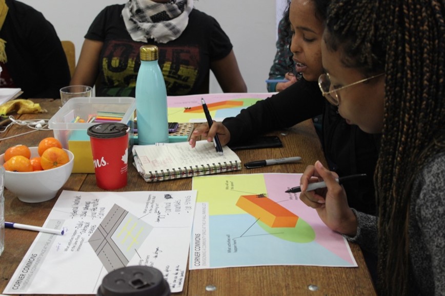 From all these community engagements emerged a unified vision for Corner Commons: to create a space that would enable community members to meet, rest, and spend time outdoors. More importantly, this effort would provide a much-needed central space for local grassroots groups and organizations to safely connect residents to information, services, and supports and engage the broader community on important local issues and initiatives.