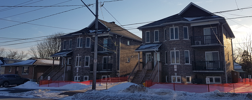 As one of the earliest settlements in Upper Canada, Cornwall was originally laid out in a square grid pattern. Like many cities, Cornwall grew through annexation and eventually incorporated the often haphazardly developed working class neighbourhoods to its east and west. Cornwall’s traditionally Francophone East End is home to a diverse mix of tightly packed multi-unit housing, with significant existing stocks of early 20th century worker housing for a nearby cotton mill (which has now been converted to high-end condos). Much of this housing was slated for demolition and replacement in a 1960s urban renewal scheme that was never implemented. While the quality varies enormously, these duplexes, triplexes, fourplexes and small apartment buildings have provided affordable housing for over a century.