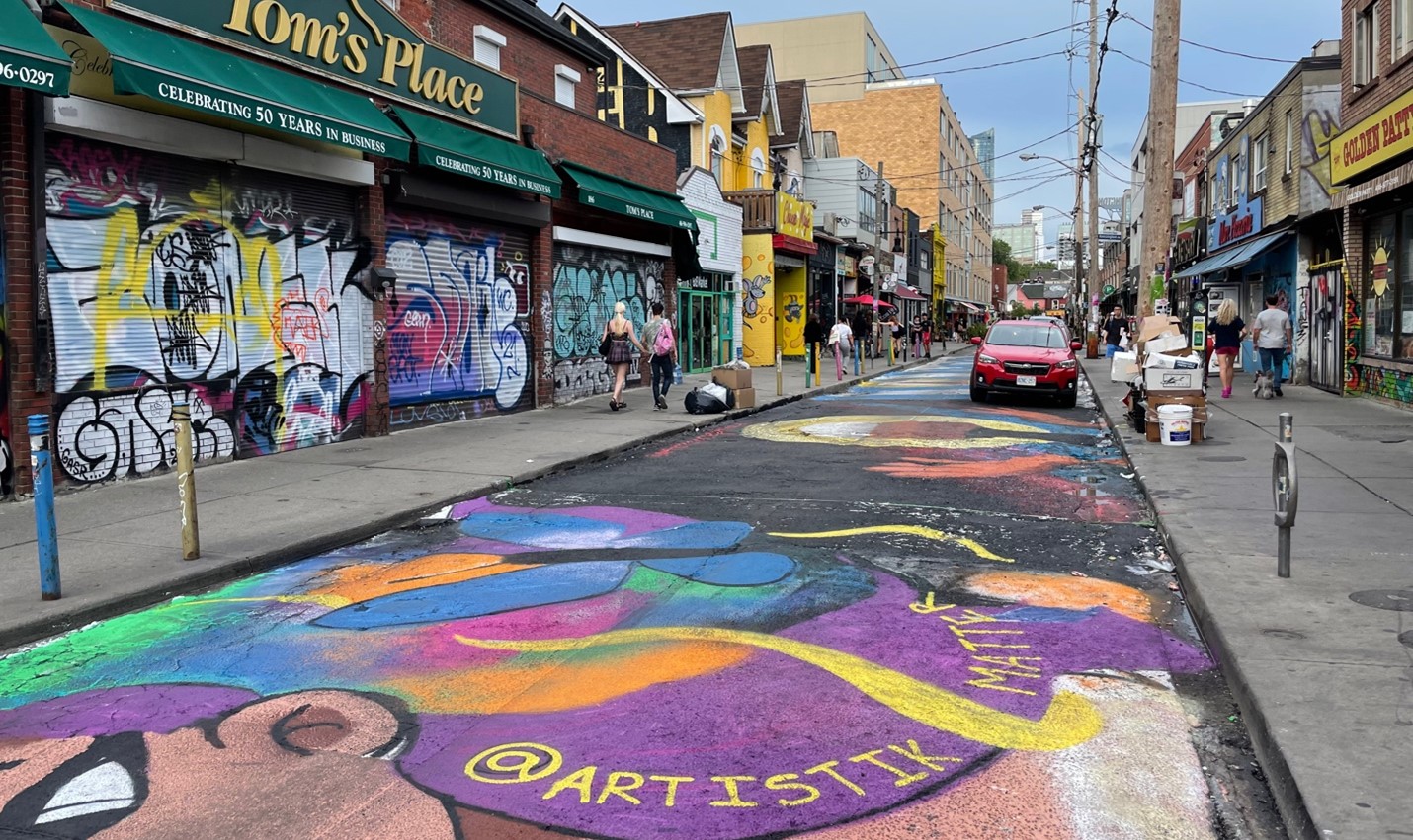 Will a facelift with grey concrete pavers risk sanitizing the Market and de-saturating its colourful nature? While few will miss the potholes, it’s what today’s degraded streetscape affords, which is appropriation by the community and the ‘acceptable’ defacing of public property. How will opportunities for creativity and self-expression be afforded when you rip out the cracked asphalt? Will the City be prepared to have their concrete pavers painted by street artists or otherwise graffitied? Kensington’s streets should anticipate how that same colourful flavour will be possible in the future.